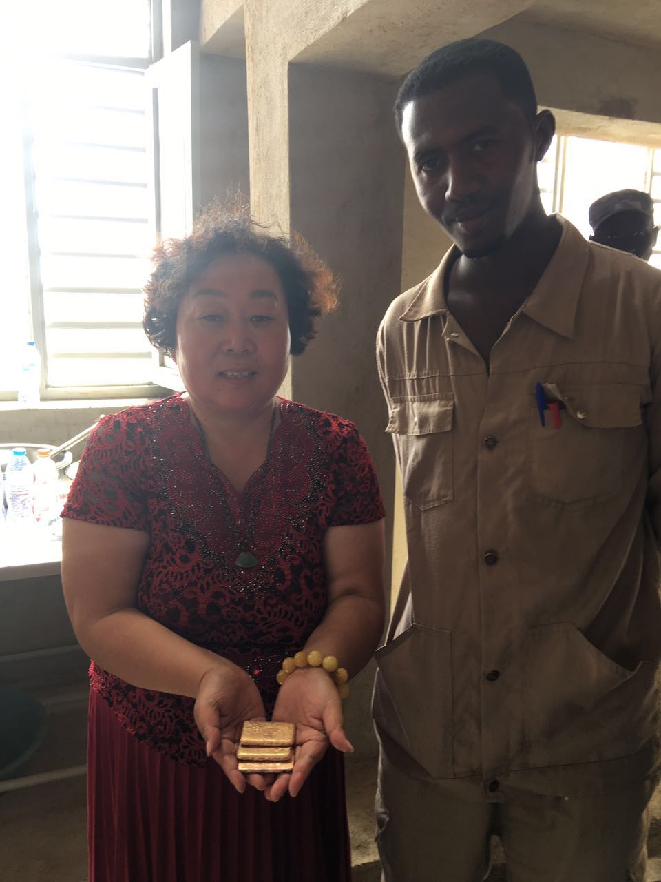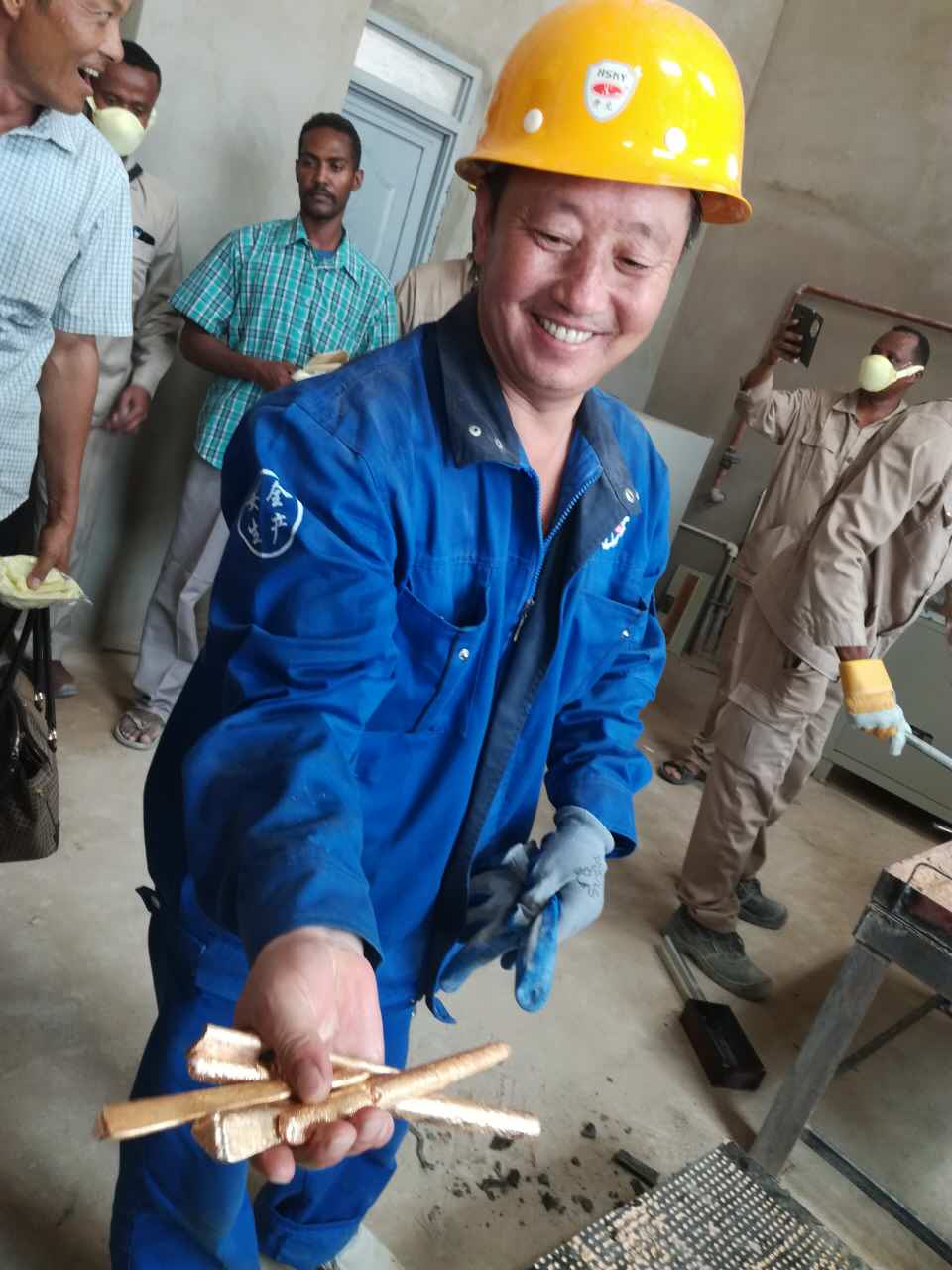 非洲200噸金礦于2017.7.17日第一批金條順利出爐,礦業(yè)部,安全部,礦主及金鵬和在場的所有的人都露出幸福笑臉,金鵬公司在茫茫沙漠中又建造一座金庫!