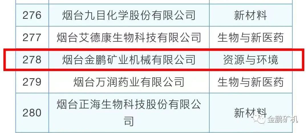 近日,工業(yè)和信息化部公布了國家第四批專精特新“小巨人”企業(yè)培育和第一批專精特新“小巨人”復核企業(yè)名單,煙臺金鵬礦業(yè)機械有限公司躍然上榜,繼入選山東省“專精特新”企業(yè)之后,再獲殊榮。