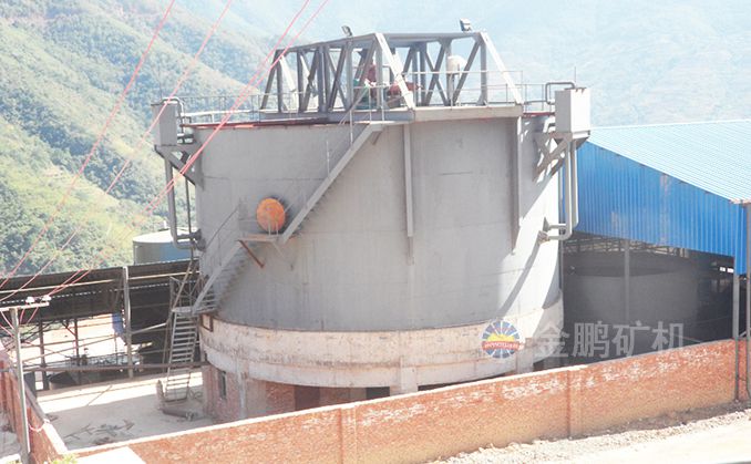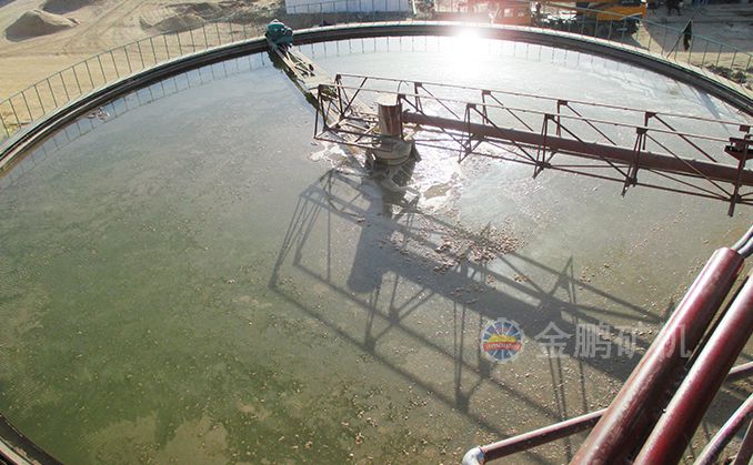 礦漿由給礦筒給入,自由沉降于耙子區(qū)的礦漿受刮板的壓力進一步濃縮,由耙子逐漸刮向池子中心,由排礦口靠重力排入下一層池子中,清水經(jīng)分配箱進入最下層對物料進行洗滌,最下層的溢流返回分配箱進入上層對物料進行洗滌,第一層的溢流經(jīng)溢流堰排出,經(jīng)兩次洗滌的物料經(jīng)底部排出.