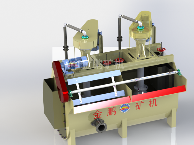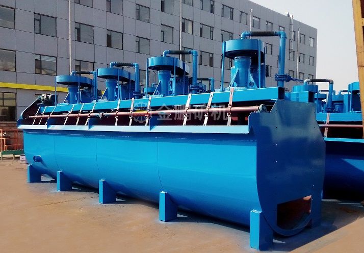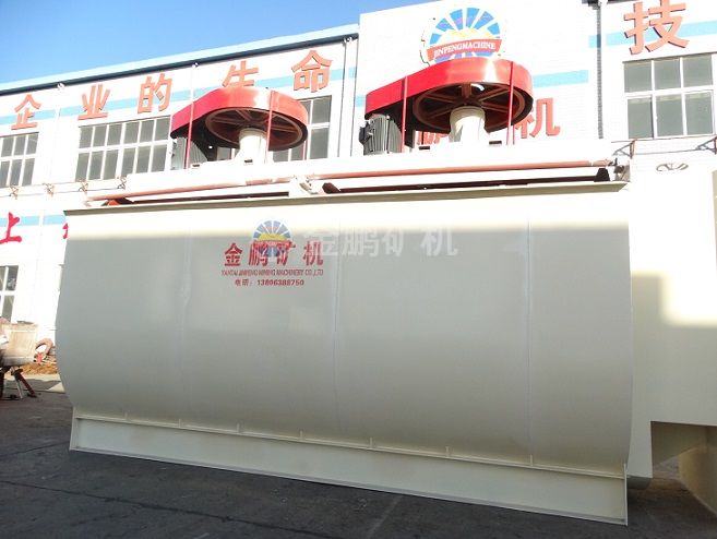 XCF型與KYF型浮選機均屬充氣型浮選機,葉輪直徑小,圓周速度低,可降低功率30-50%;槽內設有一個空氣分配器,因而空氣分散均勻;葉輪起離心泵作用,可使固體顆粒充分懸浮;采用U型槽結構,可使尾砂沉淀積最少;葉輪結構及葉片間隙流倒設計合理,葉輪磨損較均勻,葉輪、定子使用壽命長。