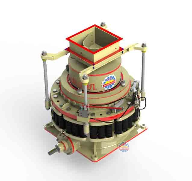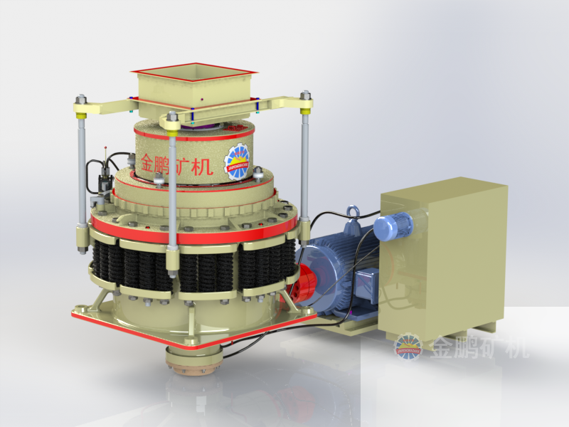 圓錐破碎機其結(jié)構主要有機架、水平軸、動錐體、平衡輪、偏心套、上破碎壁(固定錐)、下破碎壁(動錐)、液力偶合器、潤滑系統(tǒng)、液壓系統(tǒng)、控制系統(tǒng)等幾部分組成。