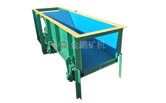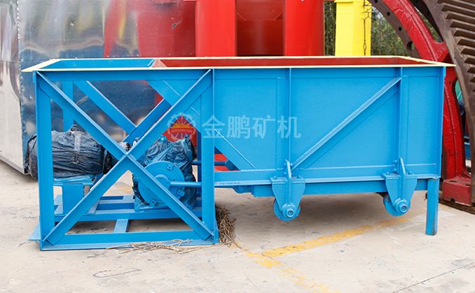 槽式給礦機設備一般安裝在料倉出料口下部,礦石落入槽體底部的漏板上,底部漏板設置在滾輪上,并通過偏心機構使漏板與雙出軸的減速機相連,然后通過聯軸器與電動機相接。工作時,由電動機通過聯軸器帶動減速機,并通過偏心盤與設備在槽架底部和滾輪之間的漏盤一起往復直線運動,從而完成均勻給料。