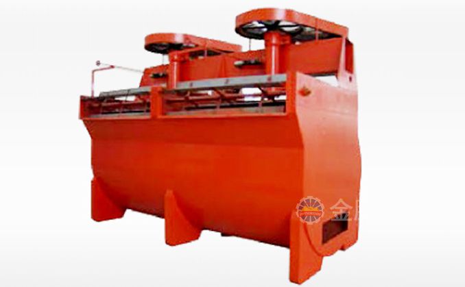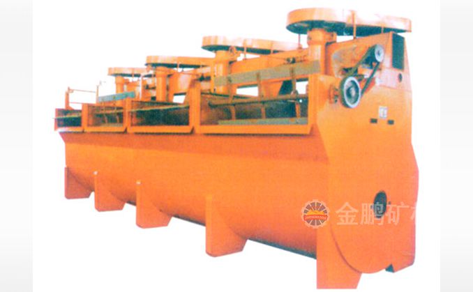 該浮選機工作時,隨著葉輪的旋轉,槽內礦漿從四周經槽底由葉輪下端吸到葉輪葉片之間由鼓風機給入的低壓空氣經空心軸和葉輪腔的空氣分配器,也進入其中。礦漿與空氣在葉片之間充分混合后,從葉輪上半部周邊向斜上方推出,由定子升穩流和定向后進入整個槽子中。氣泡上升到泡沫穩定區,礦化富集后,自溢流堰溢出。另一部分礦漿向葉輪下部流去,再經攪拌,重新混合形成礦化氣泡。剩余的礦漿流向下一槽直至最終成尾礦。